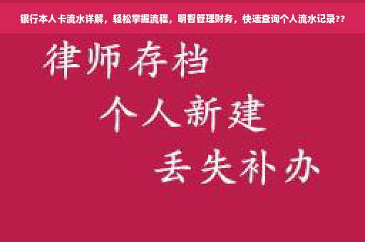 这样的文章更加详细、生动,并且深入解读了银行本人卡流水的各个方面,为读者提供了更加全面的指导。