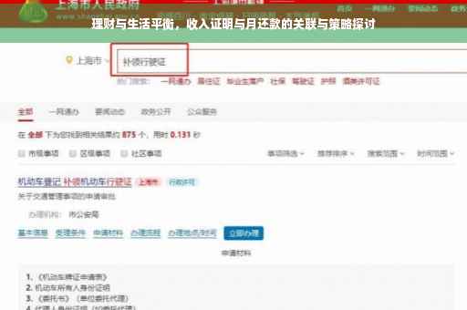 摘要:本文将探讨收入证明与月还款之间的关系,以及如何在理财中保持生活的平衡。收入证明作为个人经济能力的重要体现,直接影响到个人的贷款能力和月还款额。理财之道需兼顾收支平衡,合理规划月还款额度,确保不影响生活质量。本文将提供一些建议,帮助读者在收入证明与月还款之间找到平衡点,实现理财与生活的和谐共生。