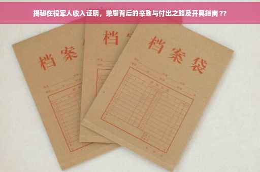 随着国防建设的不断推进和军队现代化的加速发展,在役军人的收入问题逐渐受到社会广泛关注,在大众眼中,军人是一份神圣的职业,他们守护着国家的安宁与和平,在役军人的收入究竟是怎样的呢?本文将详细介绍在役军人的收入证明,带您了解军人背后的辛勤付出与荣耀。