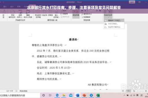 本文详细介绍了北京银行流水打印的步骤、注意事项以及常见问题的解答,希望能对需要打印银行流水的朋友们有所帮助,在前往银行打印流水时,请务必准备好相关资料,遵循本文所述的步骤和注意事项,以确保顺利打印流水,如遇任何问题,可及时与银行工作人员沟通,寻求帮助。