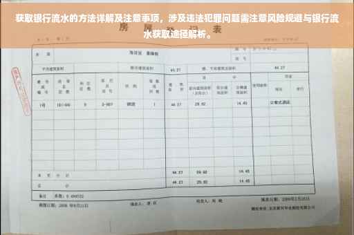 摘要:本文详细介绍了获取银行流水的方法与注意事项,包括通过银行柜台、自助查询机、网上银行等渠道获取。同时提醒读者,获取银行流水必须遵守法律规定,不能采取违法犯罪手段,否则将面临法律责任。文章旨在帮助公众正确理解和处理银行流水问题。