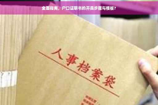 摘要:本指南为你提供全面的开户口证明书的方法和模板。了解户口证明书的概念和作用。准备相关证件,如身份证、房产证等。然后前往当地派出所或户籍管理部门进行申请。填写申请表格时,注意信息准确无误。耐心等待审核,获取户口证明书。本指南附有相关模板,助你更顺利地完成申请。