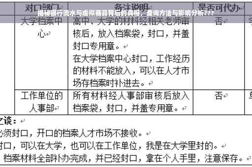 在当今数字化时代,随着网络技术的飞速发展和电子商务的崛起,虚拟商品逐渐成为人们日常生活中的重要组成部分,银行流水作为经济活动的重要记录,与虚拟商品之间的关联也日益显现,本文将深入探讨银行流水与虚拟商品之间的关系,揭示背后的真相与影响。