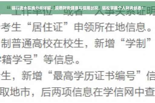 在当今数字化时代,银行业务繁忙,银行流水作为个人和企业财务活动的关键记录,其重要性日益凸显,银行流水不仅反映了收支状况,更是评估信用水平的直观依据,本文将为你深入解读银行流水,并借助在线分析功能,助你洞悉财务健康与信用状况。