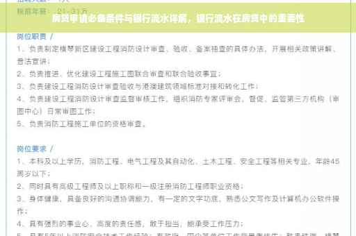 不同银行对于房贷申请中的银行流水要求可能存在差异,申请人需要了解不同银行的流水要求,以便选择最适合自己的银行,某些银行可能对于特定行业或职业的流水要求有所不同,申请人也需要关注这些差异。