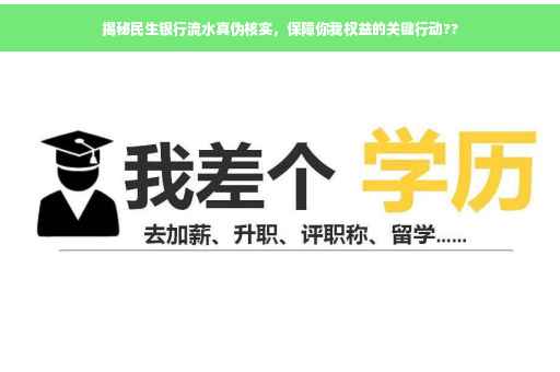摘要:为保障个人和企业权益,民生银行提供流水核实真伪服务。通过核实银行流水,确保交易记录的真实性和准确性。此项服务有助于防范欺诈风险,维护金融市场的稳定和透明。我们呼吁客户积极参与,共同揭示真相,保障你我权益。
