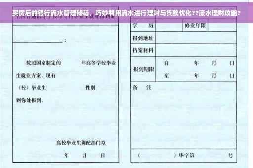 随着房价的不断上涨,买房已成为许多人生活中的重要事件,在购房过程中,银行流水作为评估个人财务状况的重要依据之一,对于贷款申请和理财规划具有至关重要的意义,本文将围绕买房后的银行流水管理展开,介绍如何巧妙利用银行流水进行理财与贷款优化。