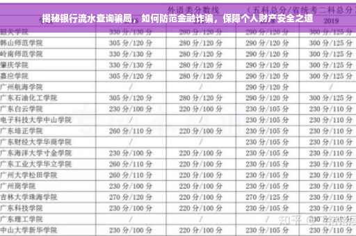 银行流水查询骗局是一种新型的金融诈骗手段,给个人财产安全带来严重威胁,作为普通市民,我们需要提高警惕,保护个人信息,识别假冒网站和软件,警惕电话诈骗,并及时报警求助,银行也应加强安全管理,完善风险控制体系,防止此类诈骗事件的发生,通过共同努力,我们可以有效防范银行流水查询骗局,保护个人财产安全。