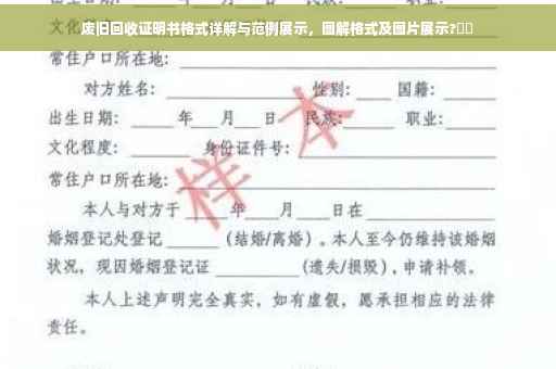 摘要:本文将详细介绍废旧回收证明书的格式,包括证书的基本结构、填写要点和注意事项等。通过展示具体的范例和格式图片,帮助读者更好地理解和应用废旧回收证明书。本文旨在规范废旧回收行业的证书管理,促进资源的有效循环利用。