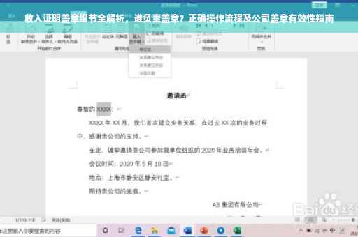 在办理贷款、信用卡或其他金融业务的过程中,收入证明作为展示个人经济能力的重要文件,其真实性及有效性尤为重要,而其中的盖章环节,更是验证收入证明真实性的关键,如何正确地进行收入证明的盖章呢?本文将为您详细解析。