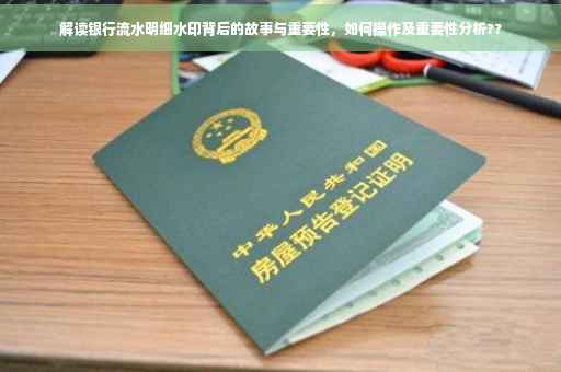 摘要:银行流水明细水印是记录个人或企业银行账户交易的重要证据,其背后隐藏着许多故事和重要性。通过银行流水明细水印,可以了解账户的资金流动情况,包括收入、支出、转账等详细信息。获取银行流水明细水印的方法包括登录网银下载、前往银行柜台打印等。了解并正确使用银行流水明细水印,对于个人财务管理和企业经营决策具有重要意义。