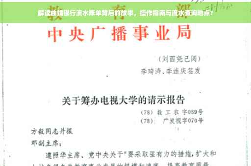 摘要:本文将介绍曲靖银行流水账单的重要性及其背后的故事解读,为读者提供一份详细的操作指南,包括如何打印银行流水账单、如何解读账单中的信息以及如何有效利用银行流水账单等。还将介绍曲靖地区打印银行流水账单的地点及相关注意事项。帮助读者更好地管理个人财务,实现财务自由。