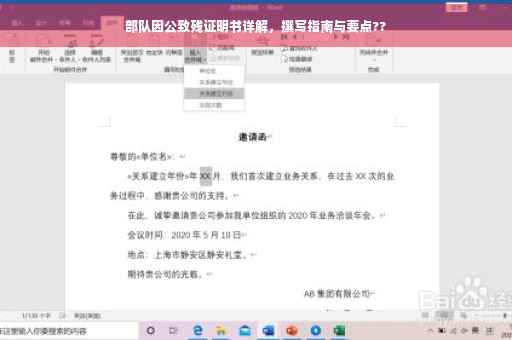 摘要:本篇文章主要介绍了部队因公致残证明书的详细写法。该证明书是证明部队人员在公务活动中因公受伤或致残的重要文件。文章详细阐述了证明书的格式和内容要求,包括填写证明书的注意事项和必要信息,如受伤人员的个人信息、受伤时间、地点、经过、伤残程度等。文章旨在帮助需要填写证明书的部队人员正确、规范地书写证明文件,确保证明书的法律效力。