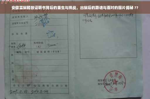 摘要:安徽监狱释放证明书揭示了一个囚犯出狱后的重生之路及其所面临的挑战。这些挑战包括重新适应社会、寻找就业机会、重建社会关系等。尽管面临困难,但出狱后的囚犯可以通过自我努力、社会支持和政府援助等途径逐渐实现重生。他们需要付出更多努力来证明自己已经改变并重新融入社会。图片中的安徽监狱释放证明书是他们新生活的起点和证明。
