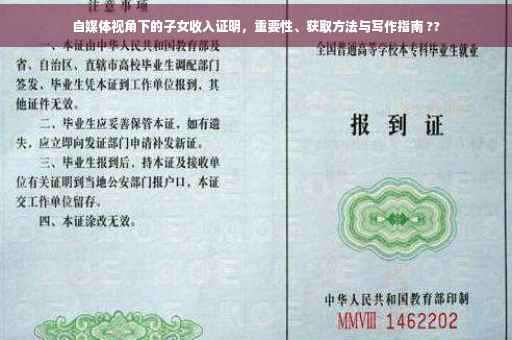 摘要:本篇文章从自媒体角度出发,探讨了子女收入证明的重要性及获取方式。文章指出,子女收入证明对于家庭财务规划、个人信用评估等方面具有重要意义,并详细介绍了获取子女收入证明的途径和注意事项。文章还提供了关于如何撰写子女收入证明的实用建议,帮助读者更好地理解和处理这一问题。