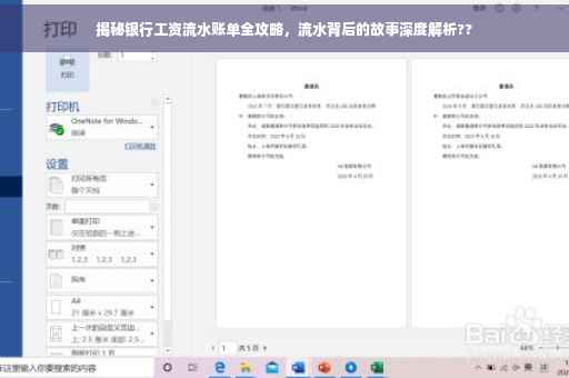 摘要:本文将全面解析银行工资流水制作过程,揭示银行流水账单背后的故事。通过本文,您将了解如何制作银行工资流水,包括注意事项和技巧。帮助您轻松获取银行工资流水账单,为您的财务规划提供有力支持。本文旨在为读者提供实用指导,助您更好地管理个人财务。