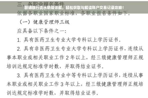本文旨在帮助读者更好地管理个人财务,通过关注流水明细,实现财务自由,希望读者能够掌握联通银行流水明细的查询和解读技巧,提高财务管理能力,随着科技的发展,我们将有更多的便捷工具来帮助管理财务,但我们也应提高安全意识,保护好个人信息和账户安全。