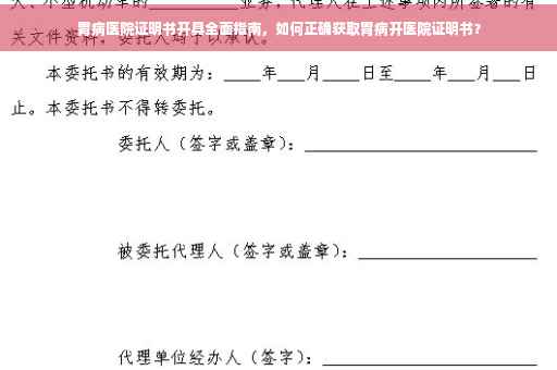本文详细介绍了胃病开医院证明书的相关内容,包括用途、内容、注意事项、获取流程、法律效力和案例分析等方面,希望读者能更好地了解这一过程,保障自己的权益,在需要开具证明书时,请确保选择正规医院,严格按照流程办理,确保证明书的真实性和准确性。