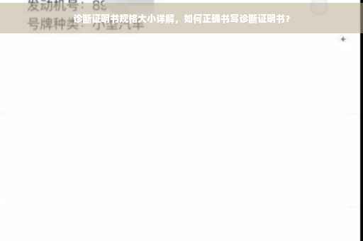 摘要:诊断证明书规格大小是指诊断证明书的设计和尺寸要求,通常需要清晰明确,包括纸张大小、字体大小、排版格式等。在写诊断证明书规格大小时,应注明具体尺寸,如A4纸大小,同时明确书写要求,如使用规定的字体和排版格式。确保诊断证明书内容清晰、准确、专业,符合医学行业的标准和规范。
