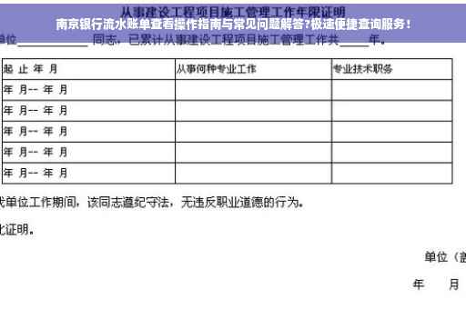 摘要:南京银行查看流水账单便捷操作指南,包括详细步骤和注意事项。同时解答常见问题,如账单查询时间、流水账单打印方式等。帮助用户轻松查询流水,节省时间精力。
