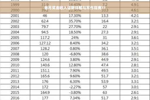 随着现代社会的发展,越来越多的人选择从事自媒体行业,作为一名自媒体作者,除了基本的工资收入外,奖金收入也是收入来源之一,本文将详细介绍各月奖金收入证明的相关内容,帮助自媒体作者更好地了解自己的收入情况。