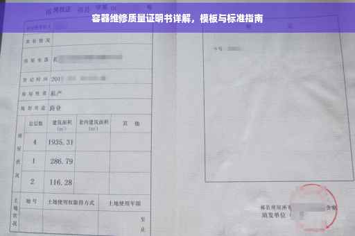 随着工业领域的迅猛进步,各类容器广泛应用于化工、石油、制药、食品等行业,容器的平稳运行对于生产过程的稳定性和产品质量起着至关重要的作用,为了确保容器的安全、可靠运行,维修工作显得尤为重要,本文将详细介绍容器维修质量证明书的重要性、内容要点以及编写要点,以指导相关企业和人员正确编写和使用容器维修质量证明书。