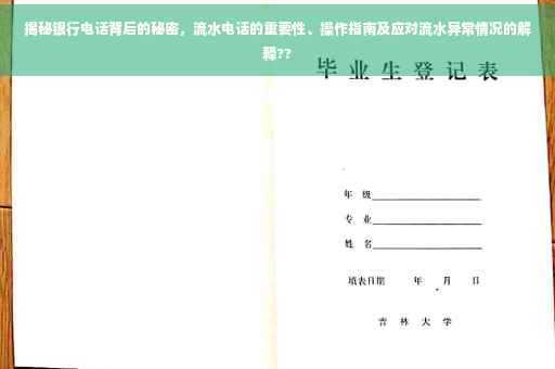 摘要:本文将揭示银行电话背后的秘密,并强调流水电话的重要性和操作指南。当银行打电话询问流水异常时,客户需要冷静解释,包括账户交易明细、异常原因等。本文旨在帮助公众了解银行电话的重要性,以及如何正确处理银行流水异常问题,确保个人财产安全。