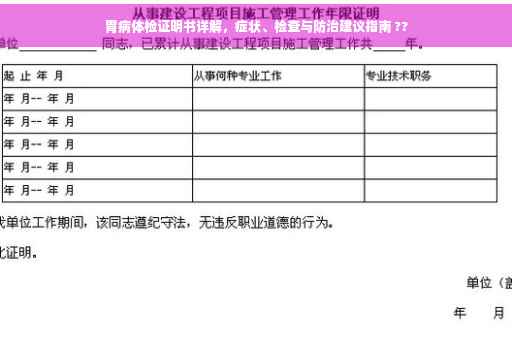 胃病体检证明书是记录胃部健康状况的重要文件,通过详细的症状和检查,可以早期发现和治疗胃病,本文旨在提供一般性信息,不能替代专业医疗建议,如有胃病相关症状,请及时就医咨询,以便得到专业的诊断和治疗。