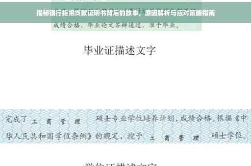 一则关于银行拒绝贷款证明书的新闻引发了广泛关注,在这背后,隐藏着怎样的故事?是信贷政策的调整,还是申请人自身的问题?让我们一起深入探讨银行拒绝贷款证明书的多层面因素、深远影响,并寻求应对策略。