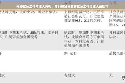 摘要:本文揭示了教师工作的真相和收入状况,为广大教师提供了一份真实的收入证明。文章介绍了教师工作的特点,包括工作压力、工作环境等方面的挑战,同时也介绍了教师的收入状况,包括基本工资、津贴和奖金等方面。文章还详细说明了如何撰写教师工作和收入证明,为需要证明的教师提供了参考和帮助。