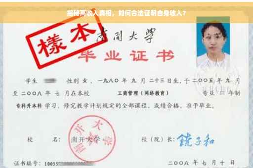 摘要:本文将揭示高收入的真相,探讨如何证明自己的收入以及确保其合法性。通过合理的方式展示个人收入状况,包括工资条、银行流水、税务证明等,可以清晰地展现个人的收入来源和收入水平。遵守法律法规,诚实劳动所得是确保收入合法性的关键。本文将指导读者在追求高收入的同时,保障自身权益,避免法律风险。