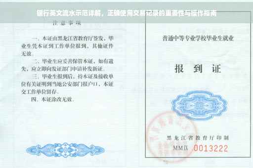 正确理解和使用银行交易记录对于个人和企业来说都至关重要,通过本文提供的银行英文流水示范和相关知识介绍,希望能帮助大家更好地了解银行交易记录的重要性,并学会如何正确管理和使用这些记录,在使用过程中,如遇到问题,应及时与银行联系并寻求解决方案,还要注重保护个人隐私和账户安全,避免不必要的损失。
