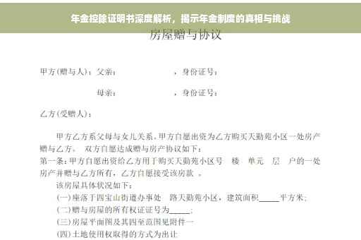 随着人口老龄化趋势的加剧,养老金问题逐渐成为社会关注的焦点,年金制度作为社会保障体系的重要组成部分,对于保障退休人员的生活质量具有重要意义,在实际运行过程中,年金控除证明书作为年金制度中的一项重要环节,却时常引发争议,本文将深入探讨年金控除证明书的内涵、作用,揭示其背后的真相与挑战,并探讨应对策略及建议。