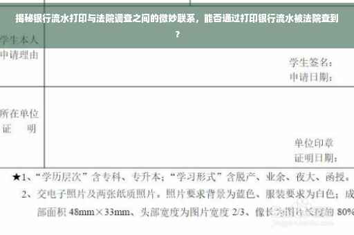 随着社会的快速发展,金融领域的透明度和便捷性越来越受到人们的关注,在这个过程中,银行流水作为个人或企业金融交易的重要记录,其重要性日益凸显,特别是在涉及法律诉讼等特定情境下,打印银行流水可能变得复杂且至关重要,本文将深入探讨打印银行流水与法院之间的微妙关系,帮助读者更好地了解这一领域的知识。