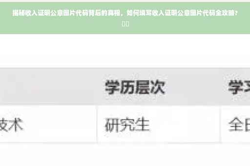 摘要:本文将揭示收入证明公章图片代码背后的真相,介绍如何填写这些代码。文章将简要介绍收入证明的概念和作用,强调公章在其中的重要性。将详细解释收入证明公章图片代码的含义和用途,以及如何通过正确填写这些代码来确保文件的真实性和有效性。提醒读者在填写过程中需要注意的细节和常见问题,帮助读者更好地理解和应用收入证明公章图片代码。