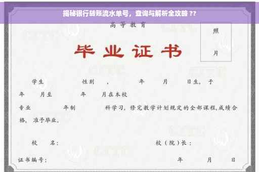 摘要:本文将介绍银行转账流水单号的相关知识,包括其含义、作用以及查询方法。通过解析银行转账流水单号,读者可以更好地了解自己的资金流向和交易记录。本文将指导读者如何查询银行转账流水单号,并揭示其中可能存在的注意事项和常见问题。