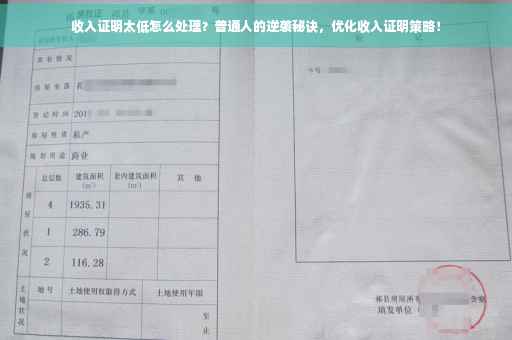 摘要:面对收入证明太低的问题,普通人也有逆袭之路。可以通过提升自身技能,寻找更高薪资的工作机会;或者选择副业增加收入来源;同时合理规划个人财务,减少不必要的支出。处理收入证明低的问题需积极面对,寻求多种途径提升收入,实现个人经济的改善。