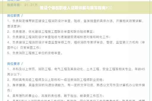 随着全球化的进程加速,越来越多的人选择出国旅游、学习或工作,在申请签证时,提交个体在职收入证明是证明自身经济状况的重要步骤,本文将详细介绍签证个体在职收入证明的相关内容,帮助申请者顺利办理签证手续。