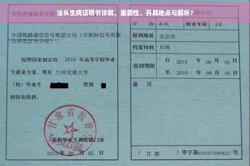 随着社会的不断发展,人们对健康问题的关注度日益提高,在医疗领域,生病证明书作为一种重要的医疗证明文件,广泛应用于各种场合,本文将围绕汕头生病证明书展开讨论,介绍其含义、功能及其在日常生活中的应用场景,以帮助读者更好地了解和使用这一文件。