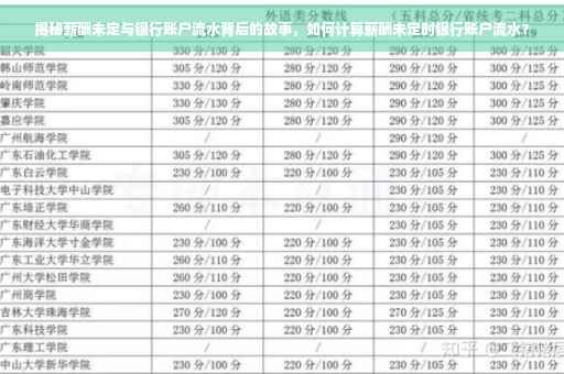 摘要:本文将探讨薪酬未定时如何计算银行账户流水,揭示背后隐藏的故事。文章将介绍银行流水的重要性,解析在薪酬未确定的情况下如何估算银行流水,以及如何通过合理的方式获取准确的流水记录。对于面临薪酬不确定和银行账户管理问题的人来说,本文提供了实用的指导和建议。