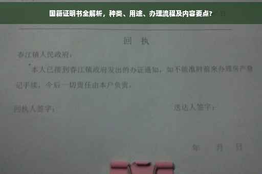 随着全球化的发展,国际交流愈加频繁,国籍证明书在人们的生活中扮演的角色愈发重要,本文将全面介绍国籍证明书的种类、用途以及办理流程,以助大家更好地理解和运用这一关键文件。