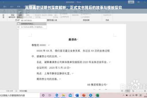 随着时代的发展,企业高管离职已成为常态,离职证明书作为高管离职的重要文件,不仅是对其工作表现的认可,也是其未来职业生涯发展的一个重要参考,本文将详细介绍高管离职证明书的撰写过程及其重要性。