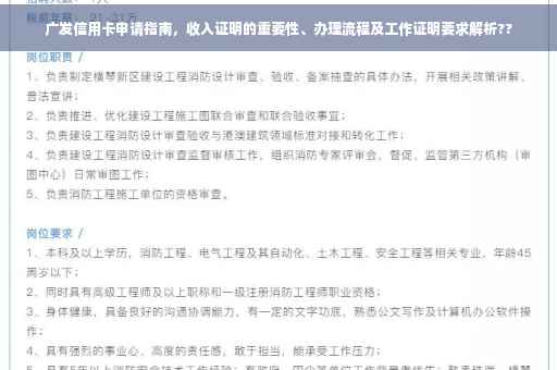 摘要:本文介绍了广发信用卡的申请攻略,强调了收入证明在申请过程中的重要性。详细阐述了办理流程,包括是否需要提供工作证明。文章旨在帮助申请者顺利申请广发信用卡,了解并准备相关证明材料。