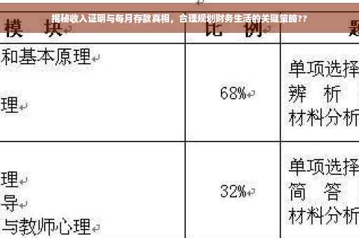摘要:本文将揭示收入证明与每月存款之间的真相,帮助你了解如何合理规划个人财务生活。通过合理的收入证明和每月存款规划,确保你的财务状况稳健发展。本文将为你提供实用的建议,让你了解每月存款多少才合理,从而实现财务自由。