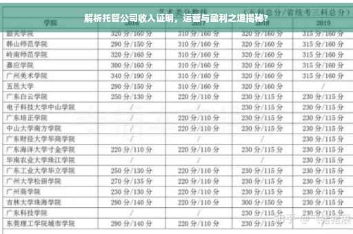 随着现代社会的发展,托管公司作为一种新兴的商业模式逐渐崭露头角,托管公司涉及的业务范围广泛,涵盖了金融、教育、房地产等多个领域,在这样的背景下,托管公司的收入证明成为了公众关注的焦点之一,本文将深入探讨托管公司的收入来源、运营模式以及盈利状况,以期为读者呈现托管公司的真实面貌。
