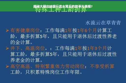 作为一名自媒体作者,今天我要和大家深入探讨“出纳银行流水大”这个话题,随着金融行业的日新月异,人们开始密切关注自己的银行流水账单,特别是那些显示数额巨大的情况,这篇文章将详细解读出纳银行流水大的背后含义、可能的原因以及需要注意的事项。