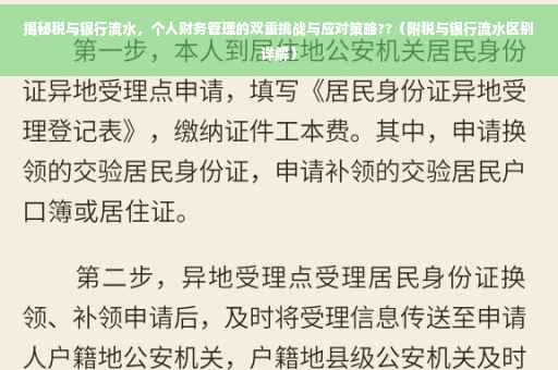 在现代社会,税收和银行流水作为个人财务管理的重要组成部分,越来越受到人们的关注,对于自媒体作者来说,深入了解这两个方面的知识和技巧,不仅能够帮助自己更好地管理个人财务,还能为读者提供有价值的建议和指导,本文将围绕税与银行流水展开讨论,帮助大家更好地应对个人财务管理中的两大难题。