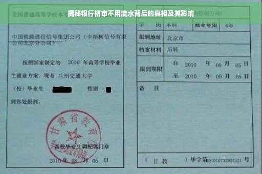 银行初审不用流水是金融行业创新发展的产物,它既带来了便利,也带来了挑战,对于广大民众和企业来说,了解这一政策的真相与影响,将有助于更好地利用金融资源,促进自身发展,银行也应不断完善风险管理机制,确保业务风险可控,为民众提供更优质的金融服务。