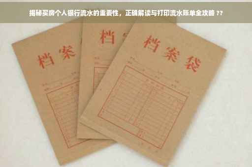 在楼市火热的当下,购房已成为许多人生活中的重要事件,当我们准备购房时,除了收入证明外,银行流水作为评估个人经济状况和还款能力的重要依据,其作用不可忽视,本文将详细解析买房个人银行流水的重要性,以及如何通过正确的方式解读自己的银行流水,助你顺利购房。