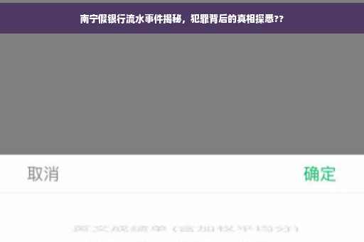 近年来,随着社会的快速发展,各种违法犯罪手段层出不穷,制造假银行流水账单的行为屡见不鲜,特别是在南宁等地,这种现象更是愈演愈烈,本文将以南宁假银行流水为例,深入探讨其背后的原因、危害以及如何防范,以期引起广大市民的高度重视,共同维护金融秩序和社会和谐稳定。